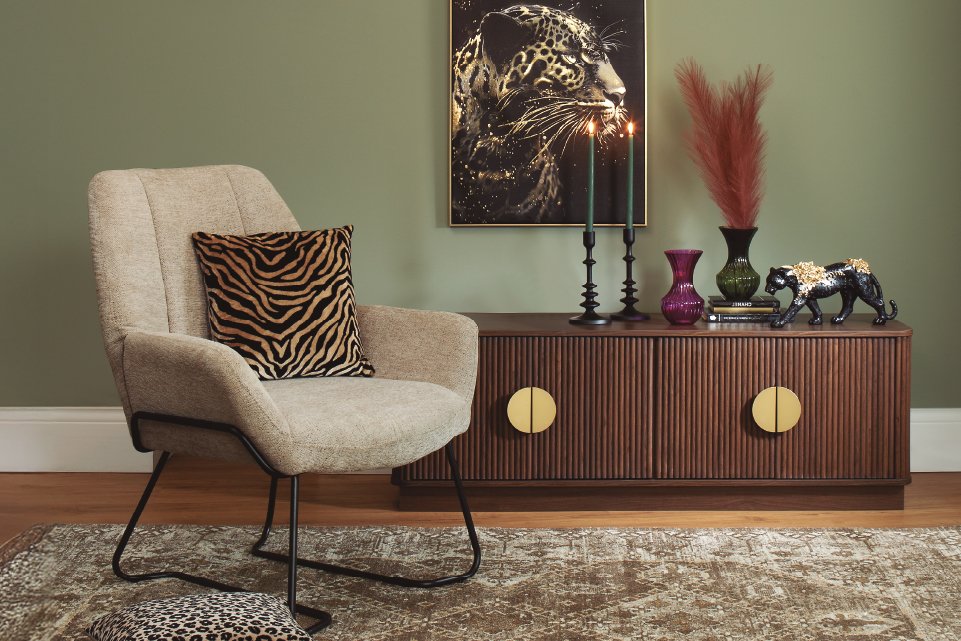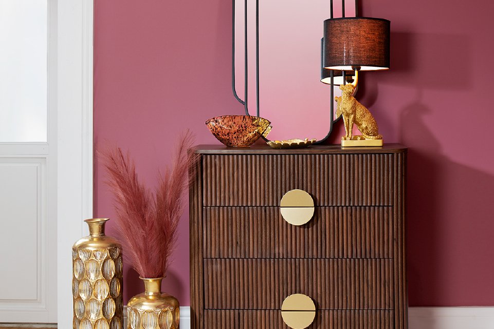 O dourado é o fio condutor desta coleção, criando uma sensação imediata de luxo sem sobrecarregar os ambientes. As peças metálicas em dourado — espelhos, candeeiros, jarras, puxadores e acessórios decorativos — funcionam como pontos de destaque, refletindo a luz e valorizando texturas como o veludo e a madeira. Por outro lado, o dourado também se harmoniza com cores intensas, como o beringela, o rosa e o azul-escuro. Esta combinação aporta personalidade e drama à decoração, tornando-a absolutamente memorável!