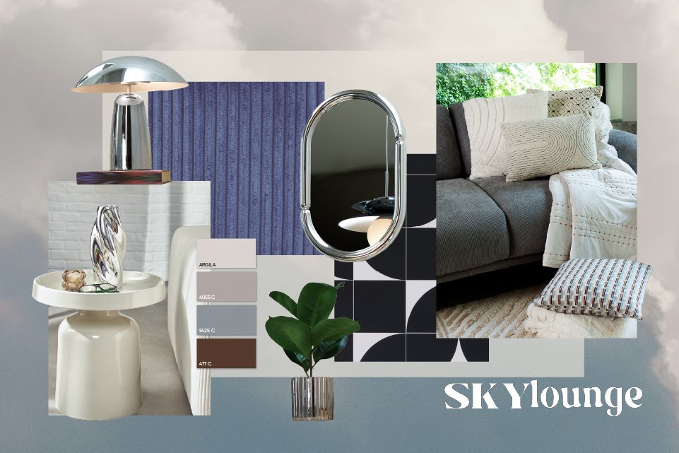 Em SKY LOUNGE ecoa também o design Bauhaus, que procura a integração perfeita entre função e estética. Esta influência revela-se na funcionalidade prática do mobiliário — muitas vezes, marcado por estruturas metálicas e superfícies planas — e, sobretudo, na geometria assumida como linguagem visual. Nos têxteis, em veludo canelado ou efeito bombazina, esta tendência torna-se ainda mais evidente, nomeadamente nas almofadas e nas mantas, onde sobressaem composições gráficas minimalistas que exploram linhas e círculos numa paleta de cores depurada!