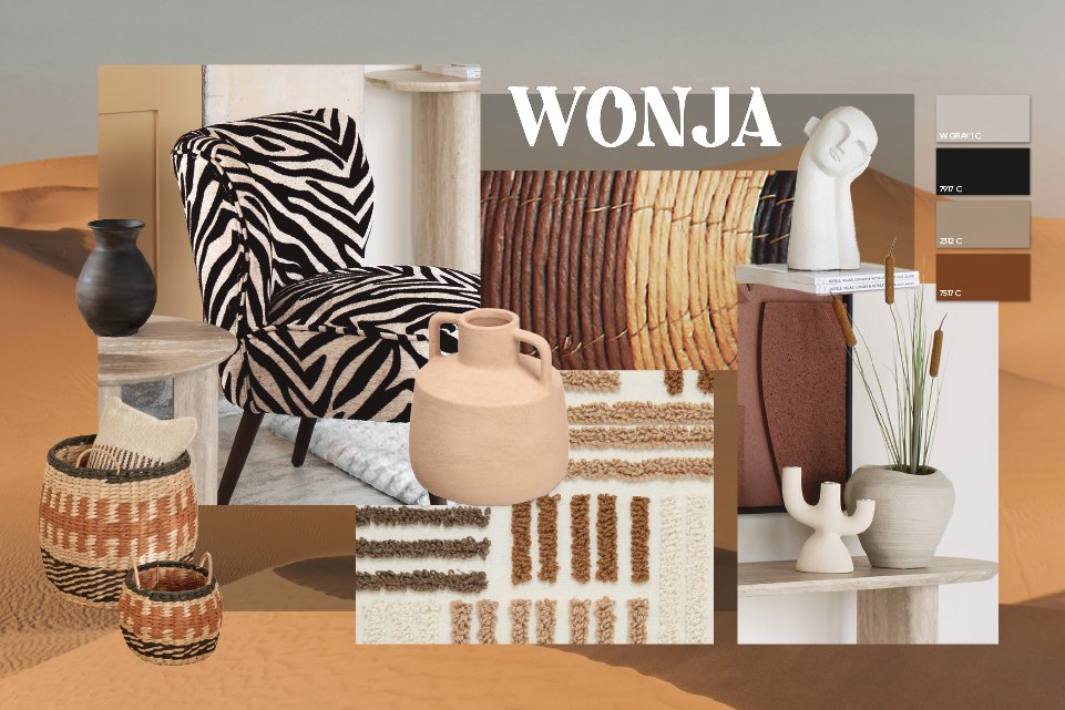 WONJA privilegia os materiais naturais, moldados em formas escultóricas que preservam a rusticidade e o caráter artesanal do feito à mão. As peças decorativas realçam a beleza essencial da matéria, com a cerâmica como protagonista de jarras, vasos e candeeiros. Um minimalismo orgânico que se expressa numa paleta de cores terrosas e neutras — cinza, branco e preto!
